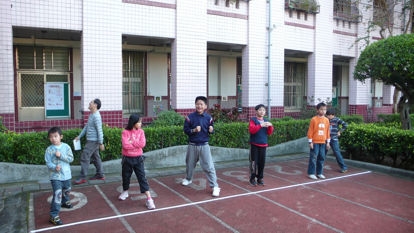 今年的體表會原訂於11/17日舉行,但由於當日天氣狀況不佳,進行雨天備案,全部活動改在禮堂舉行,徑賽的部分改至今日上午舉行~